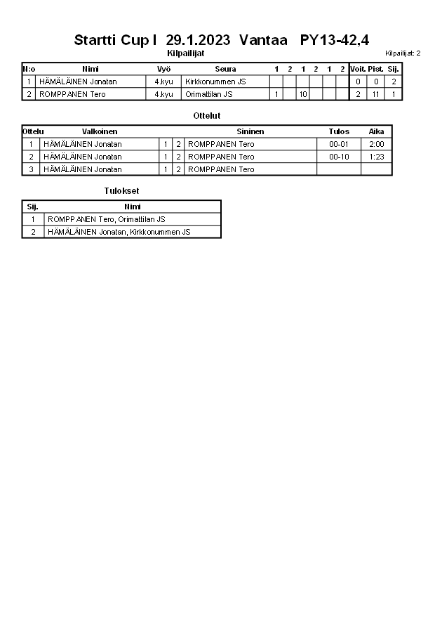 Startti Cup I 29.1.2023 Vantaa
