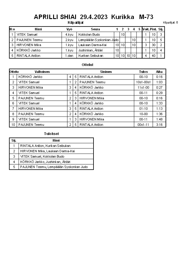 APRILLI SHIAI 29.4.2023 Kurikka