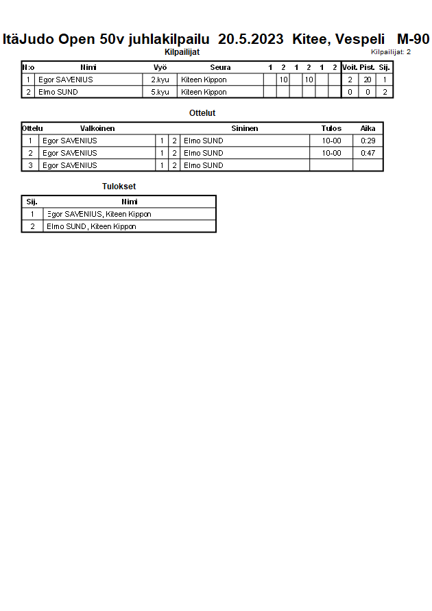 ItäJudo Open 50v juhlakilpailu 20.5.2023 Kitee, Vespeli