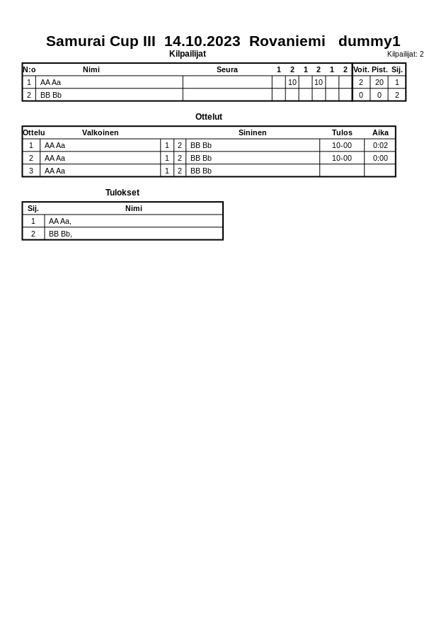 Samurai Cup III 14.10.2023 Rovaniemi