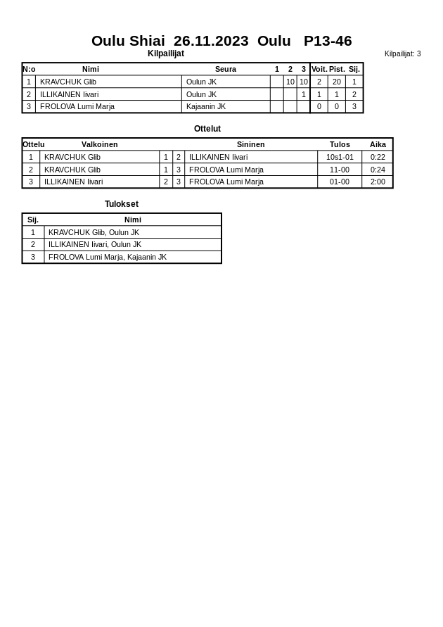 Oulu Shiai 26.11.2023 Oulu
