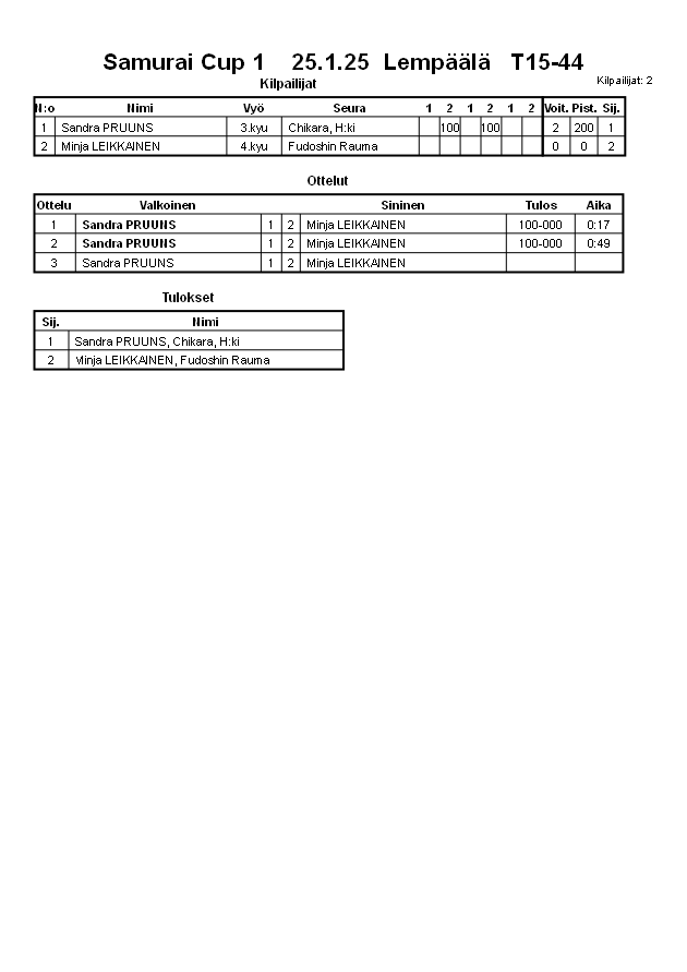 Samurai Cup 1 25.1.25 Lempäälä