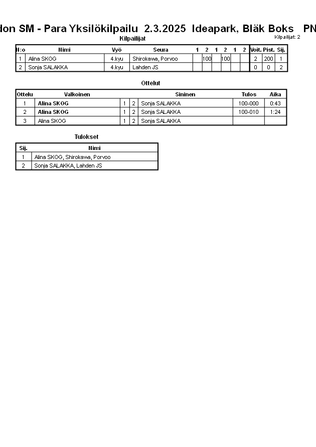 Judon SM - Para Yksilökilpailu 2.3.2025 Ideapark, Bläk Boks