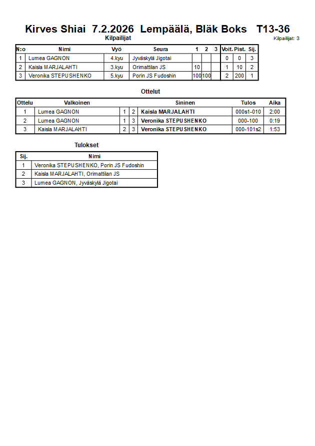 Kirves Shiai 7.2.2026 Lempäälä, Bläk Boks