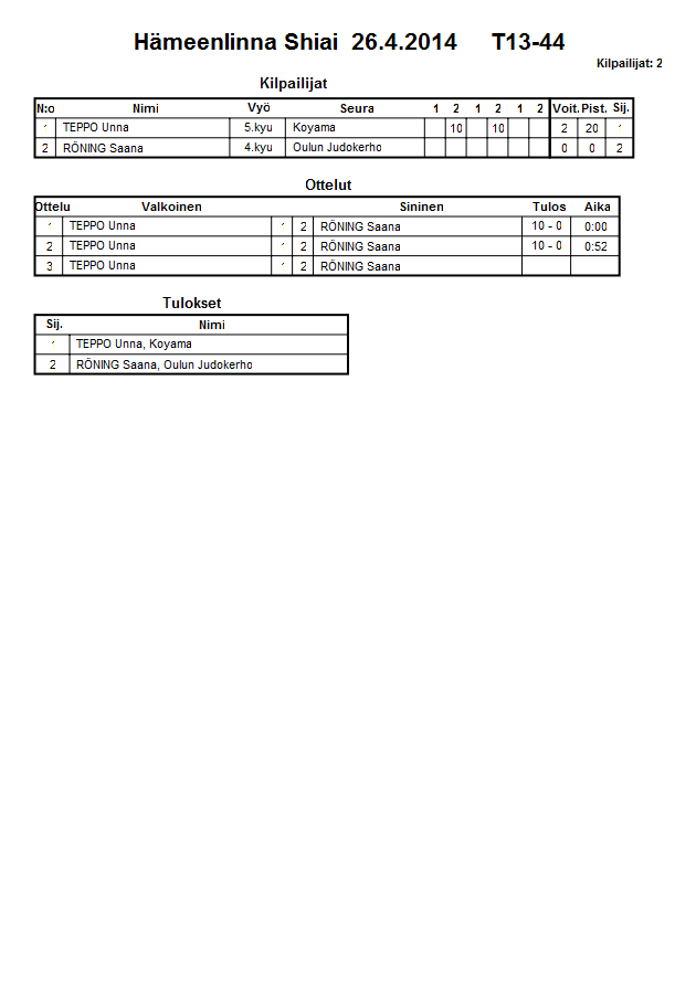 Hämeenlinna Shiai 26.4.2014
