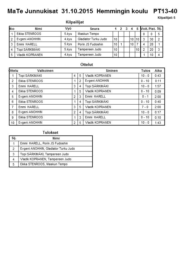 MaTe Junnukisat 31.10.2015 Hemmingin koulu