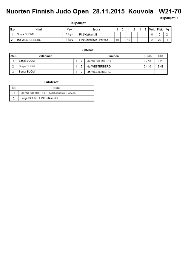 Nuorten Finnish Judo Open 28.11.2015 Kouvola