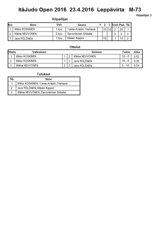 ItäJudo Open 2016 23.4.2016 Leppävirta