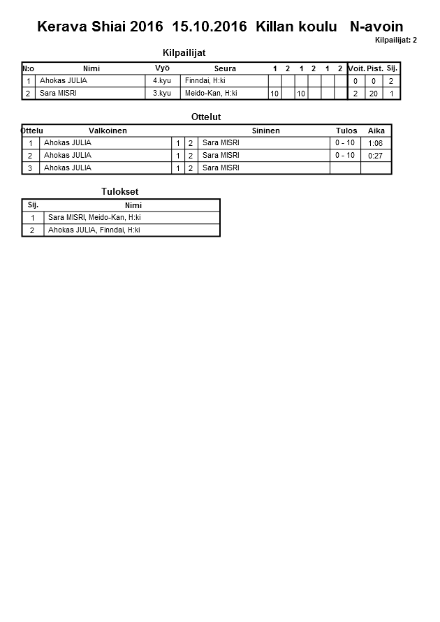 Kerava Shiai 2016 15.10.2016 Killan koulu