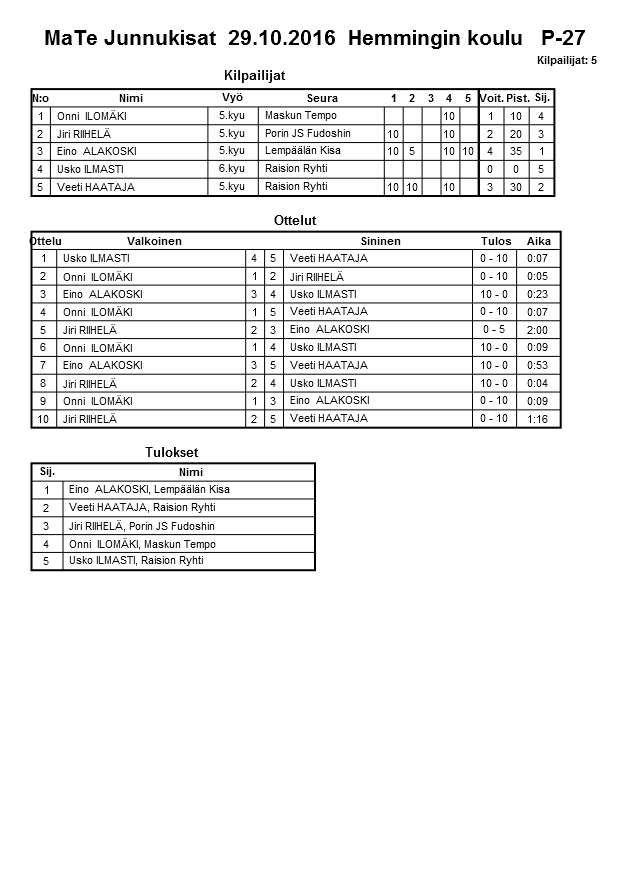 MaTe Junnukisat 29.10.2016 Hemmingin koulu