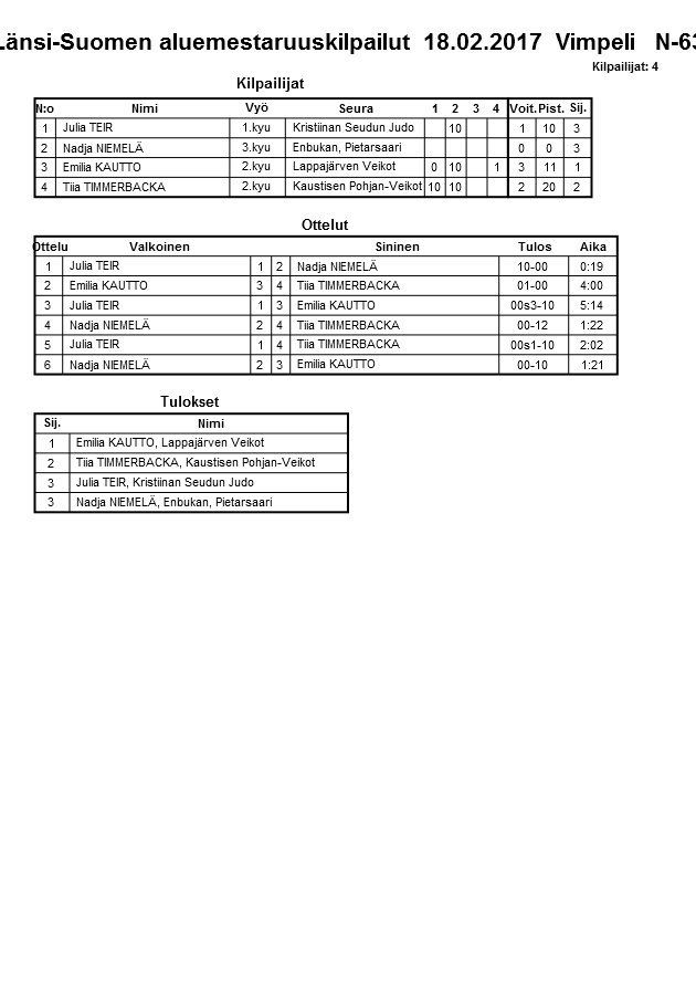 Länsi-Suomen aluemestaruuskilpailut 18.02.2017 Vimpeli
