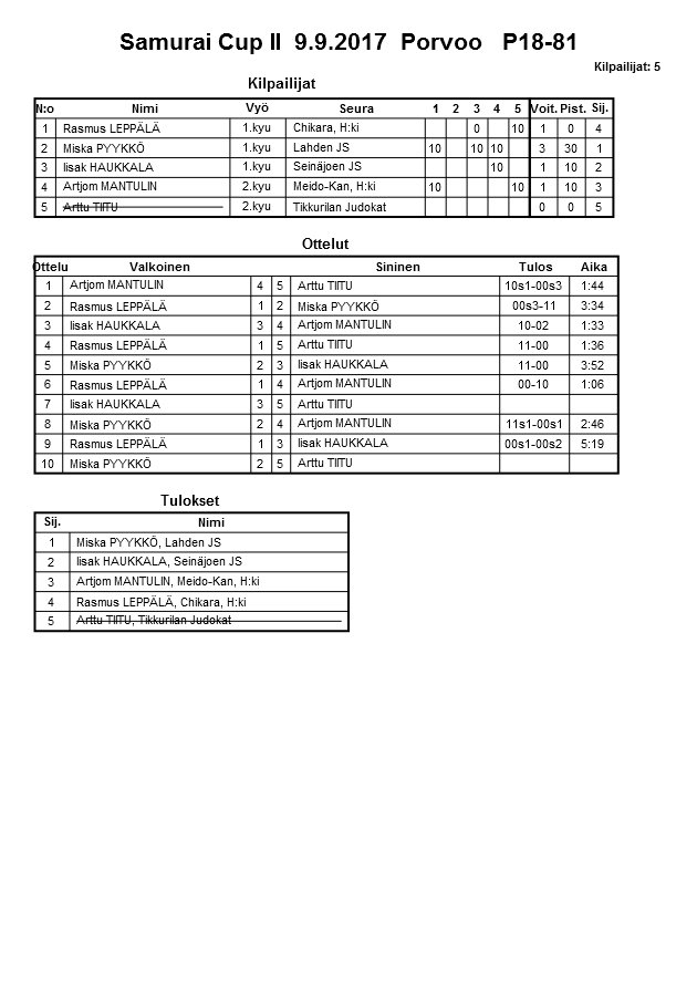Samurai Cup II 9.9.2017 Porvoo