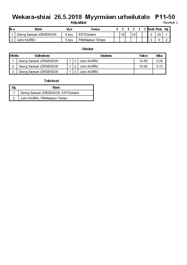 Wekara-shiai 26.5.2018 Myyrmäen urheilutalo