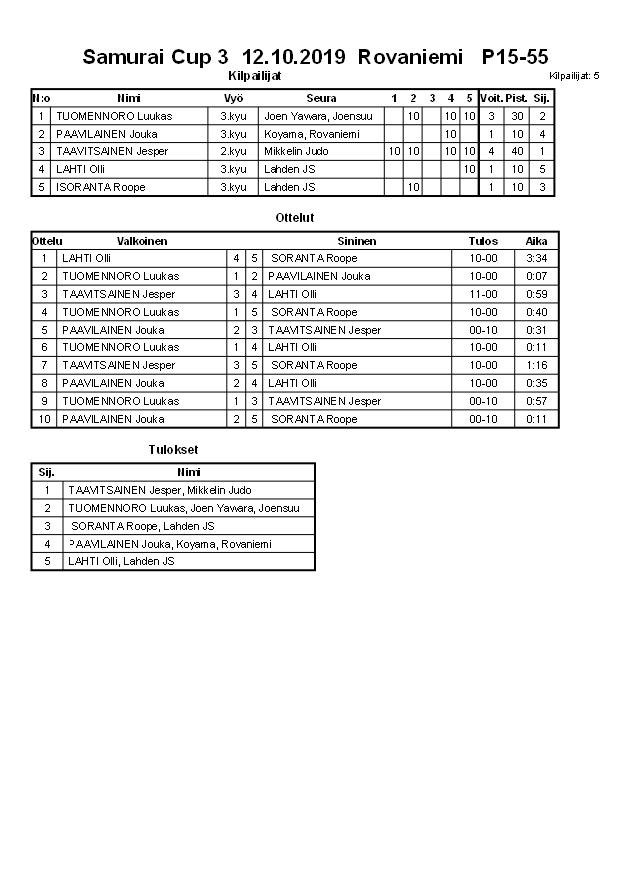 Samurai Cup 3 12.10.2019 Rovaniemi