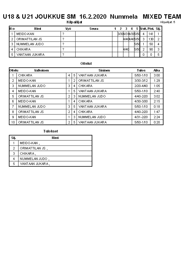 U18 & U21 JOUKKUE SM 16.2.2020 Nummela