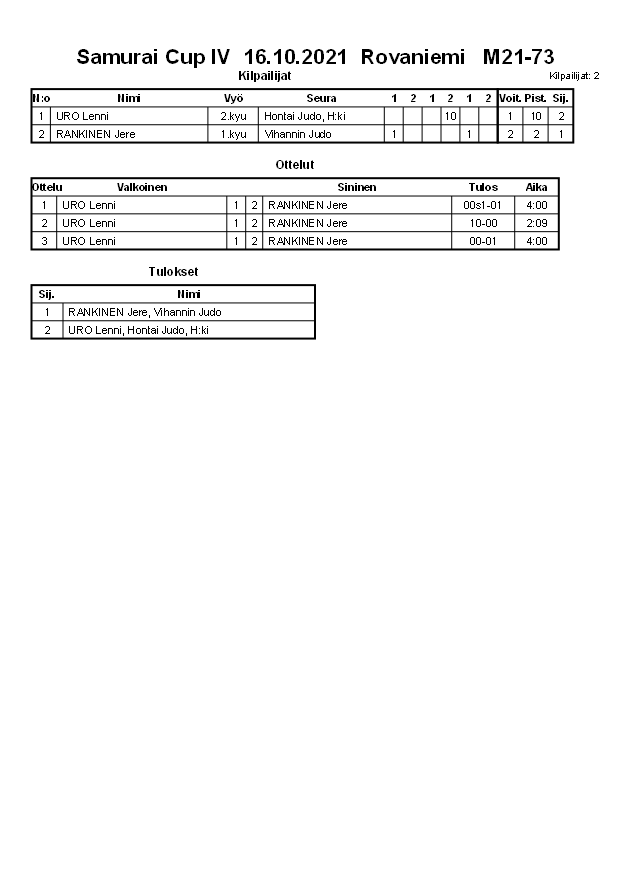 Samurai Cup IV 16.10.2021 Rovaniemi