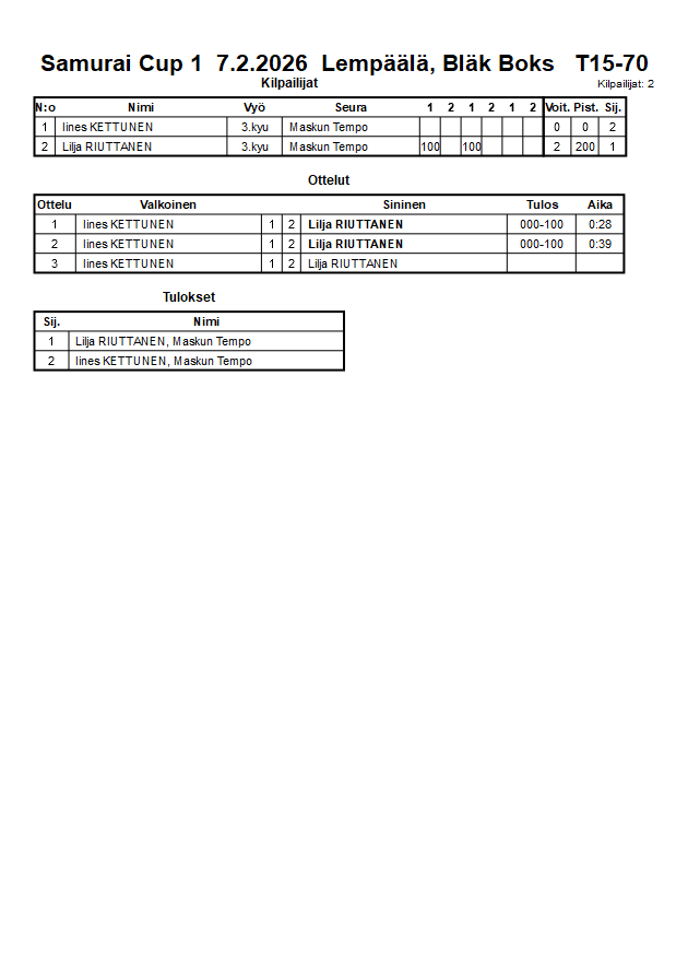 Samurai Cup 1 7.2.2026 Lempäälä, Bläk Boks