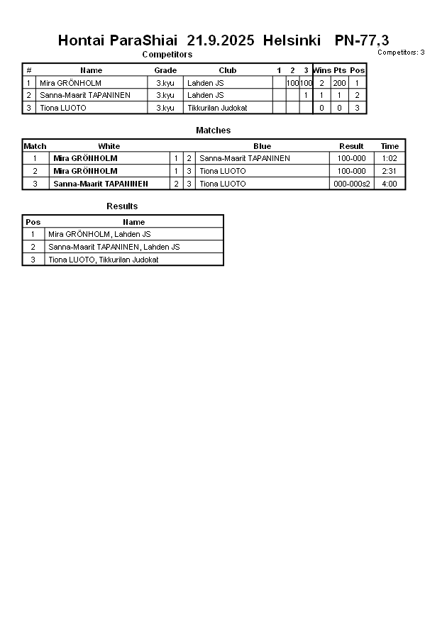 Hontai ParaShiai 21.9.2025 Helsinki