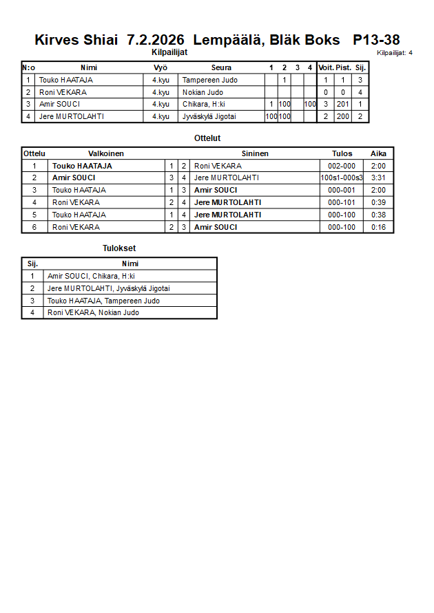 Kirves Shiai 7.2.2026 Lempäälä, Bläk Boks